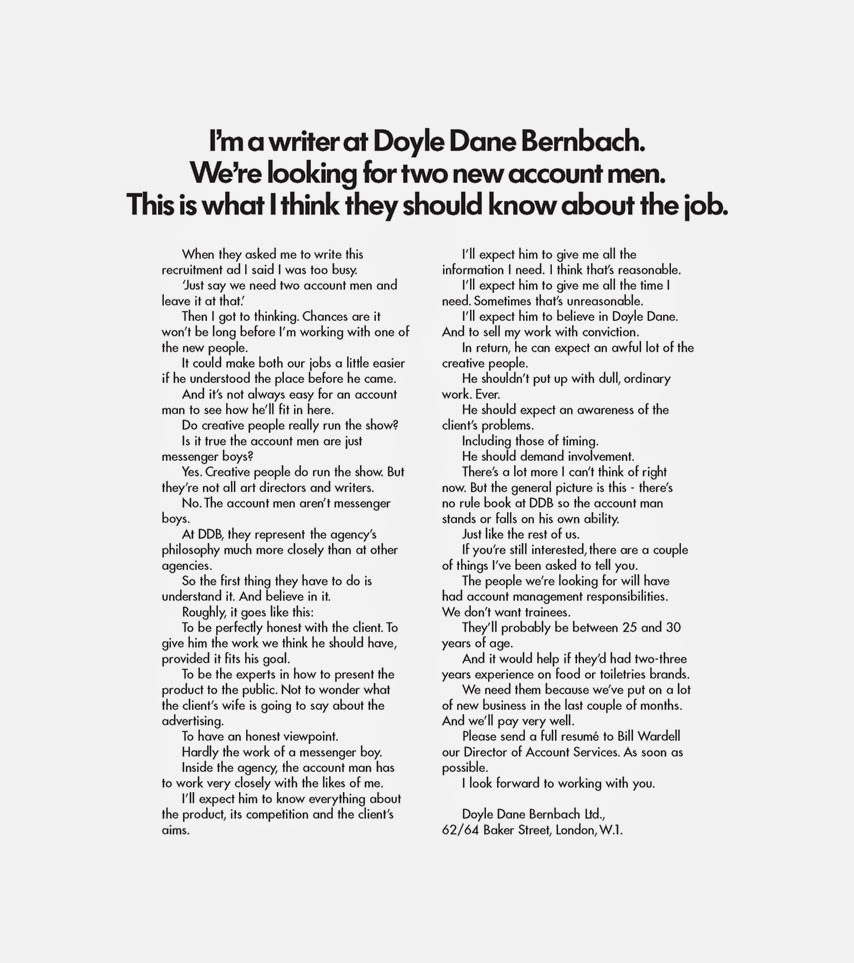 4. Confession is good for the soul and for copy, too. Bill Bernbach used to say “a small admission gains a large acceptance”. I still think he was right.