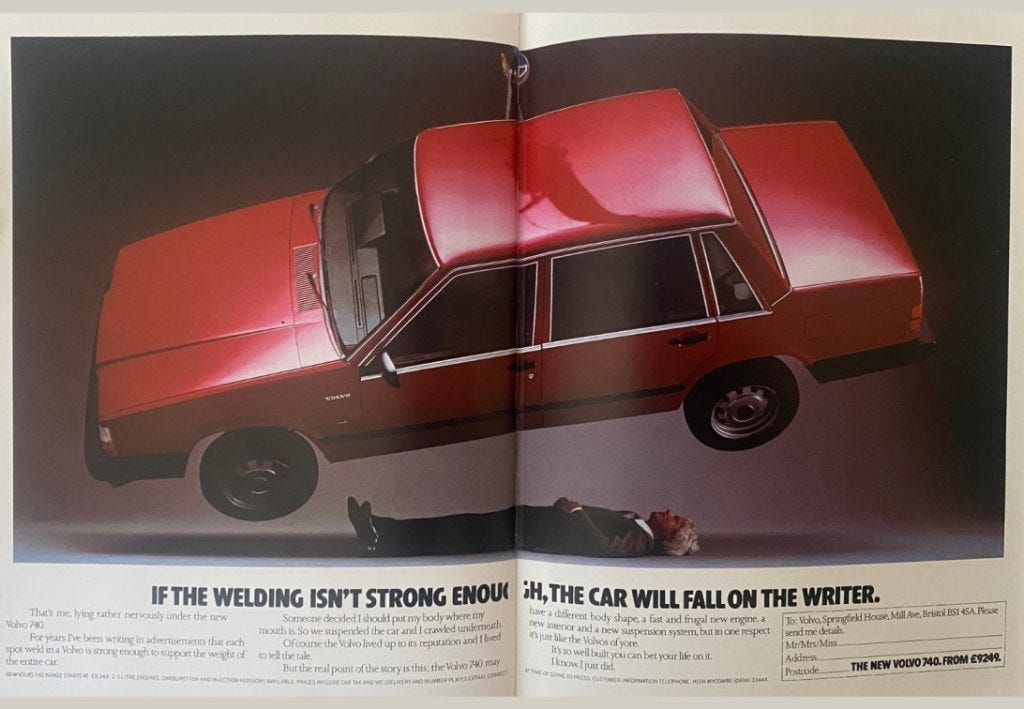 (Source: Ad Breakdown: Volvo’s “If the welding isn’t strong enough, the car will fall on the writer.”)